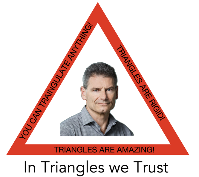 Cryo-EM reconstruction of the T=3 monomer, which is an isosceles triangle with S1 = S2 = 52nm and S3 = 59nm. S3 binds to S3 to form the pseudo 6-fold vertex and S1 binds to S2 to form the 5-fold vertex. It was designed to have equal dihedral angles of 11.6 degrees and the measured angle is 13.7 degrees.